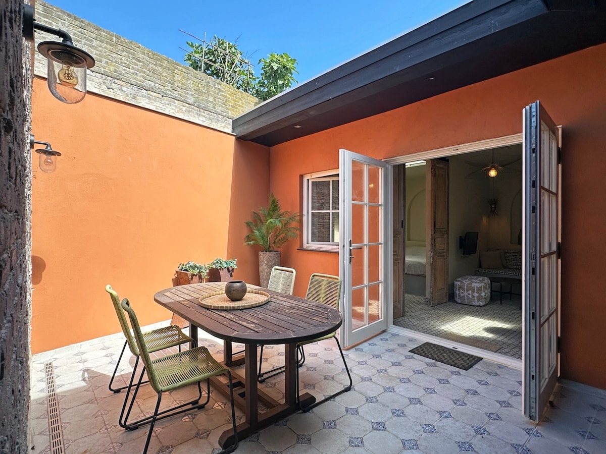 Světlé a moderní studio s úžasným výhledem na venkově. Studio má manželskou postel, koupelnu a samostatnou toaletu. Klimatizované. Je vyzdobené moderním uměním a vintage detaily. Ze studia vyjdete na soukromou terasu. Studio nabízízejí kávu a čaj zdarma, stejně jako bezplatné WiFi. Snídaně je k dispozici na požádání (12,50 EUR na osobu). Nachází se 25 minut od Amsterdamu. Upozorňujeme, že studio je nejlépe dostupné autem.