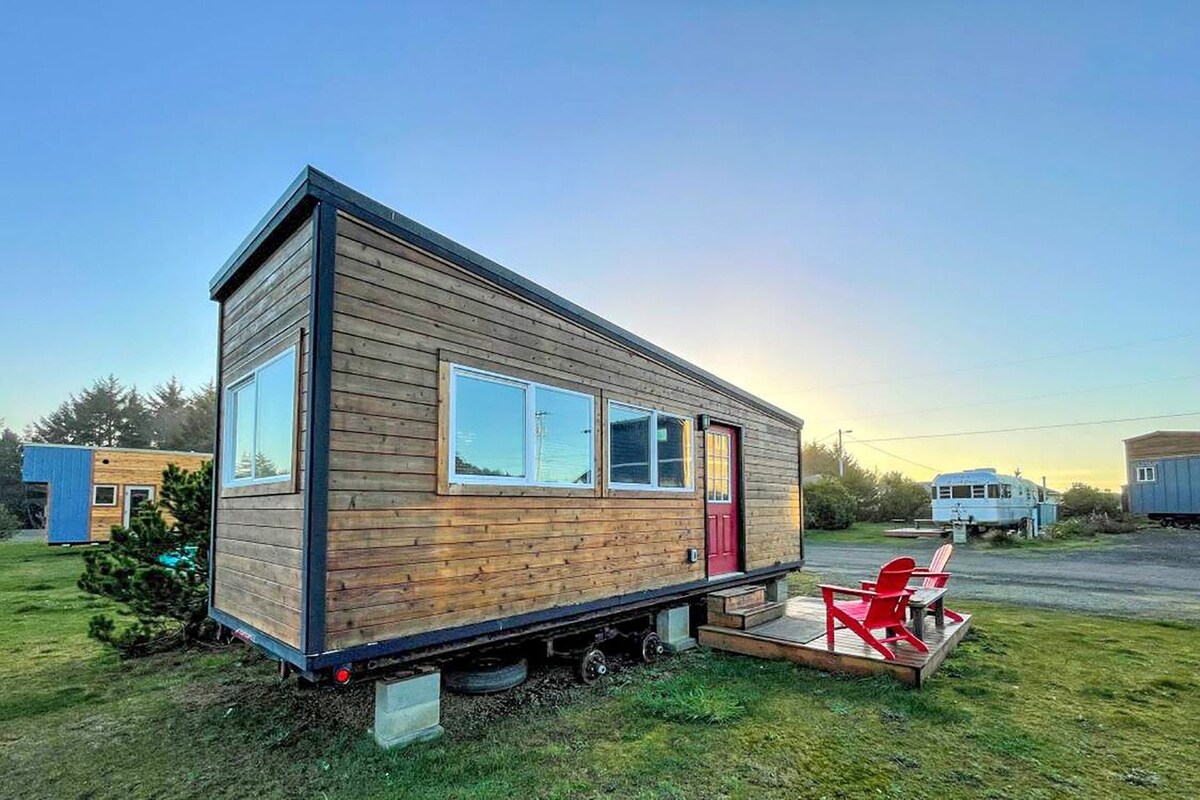 Přijď se ubytovat do Shorepine, jednoho z malých domů v Tiny Tranquility, prvním malinkatém domku a parku klasických přívěsů na pobřeží Oregonu. Shorepine nabízí krásně vybavenou menší manželskou postel na hlavním patře (bez žebříků!), plně vybavenou kuchyň s indukčními hořáky a vanu se sprchovým koutem. Dívej se z velkých oken ve stále zeleném prostředí, zatímco sedíš na pohodlném pracovním/jídelním stole nebo si odpočiň v pohodlných klubových židlích. Nebo si jen odpočiň na venkovní terase a poslechni si oceán!