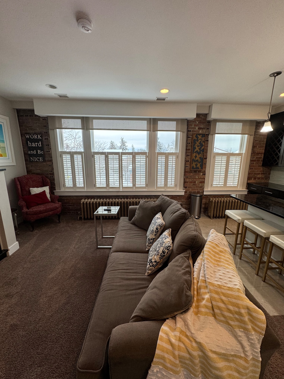 Located in the heart of East Aurora, this 2nd floor loft is perfect and 1 of 1! The entire second floor is yours and there are no other units or shared entrances. It is like 2 spaces in one. 2 bedrooms (king and queen beds), 2 full bathrooms, and 2 living spaces. High end finishes and A+ views overlooking the village. Feels like 2 places in one if you’re traveling with others, you'll have your own space! Perfect for traveling in for a Bills game and walking distance to all things East Aurora!