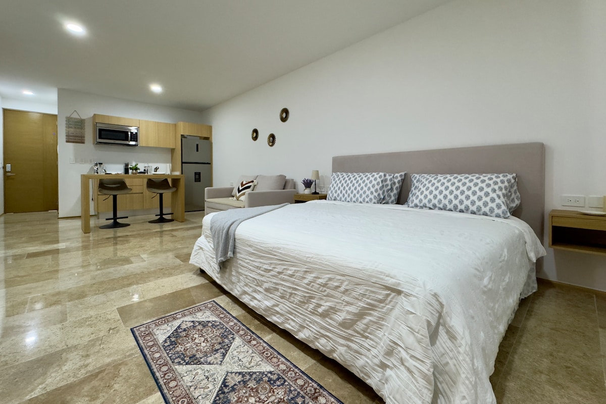 Escape to Playa del Carmen in our stylish studio, centrally located 5 minutes walking to Mamita's Beach. Steps to Quinta Avenida, and all of Playa's vibrant attractions. Fantastic amenities: infinity pool, jacuzzi, gym, coworking space. Book now and secure your dream Mexican holiday. Relax and make yourself at home. ***Click the heart <3 in the upper-right corner of listing to add to wishlist. Share with family and friends for later.