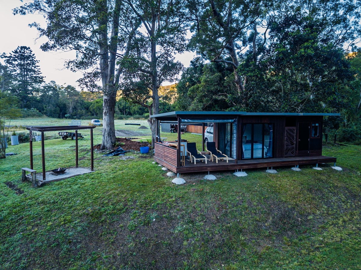 The couple's cabin is one of three close-knit pavilions at The Bower, rustique rainforest retreat; a tiny hamlet only 10 minutes drive from Maleny and 20 minutes to Woodfordia. Relax in front of the warm wood burning fireplace, enjoy the abundant bird life from your private deck, soak in the antique clawfoot bath, and lose yourself in the celestial clerestory views. Includes: light breakfast*, free WiFi, Foxtel, quirky chef's kitchen, romantic touches, quality linen, firewood** and bush pool*.