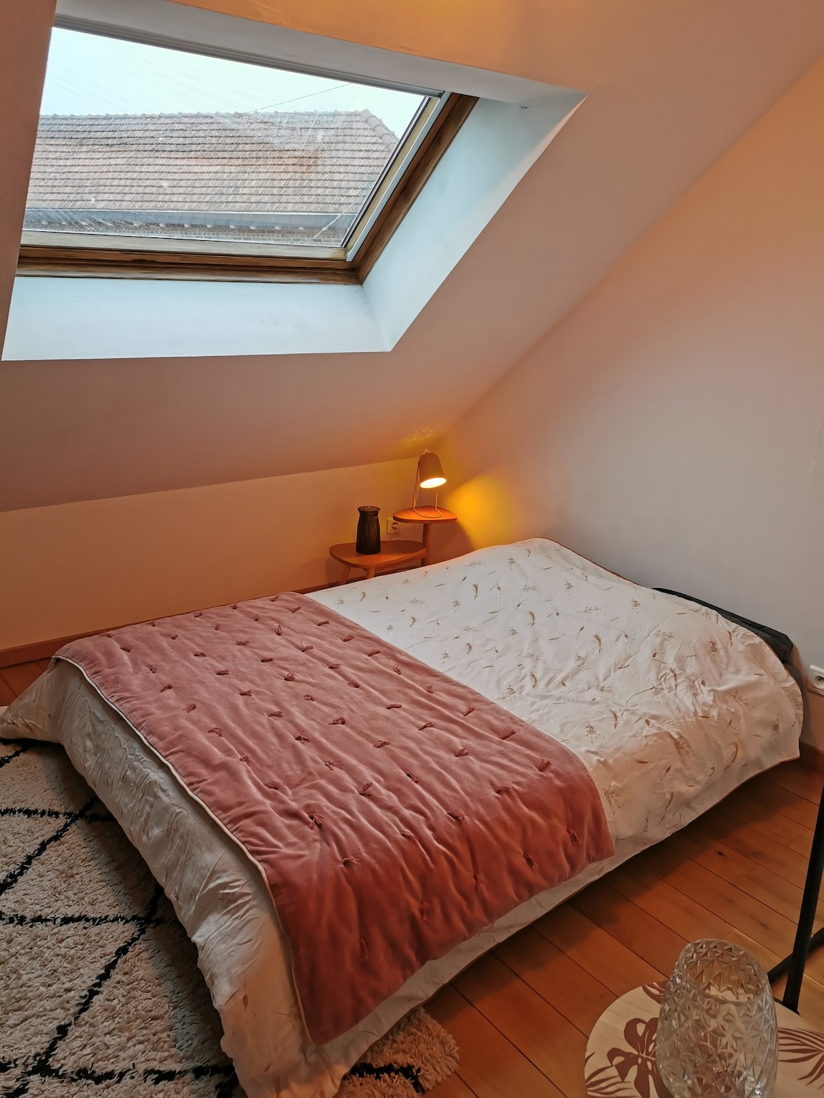 Flexibilní čas příjezdu 50 m2 byt se nachází v malé vesnici u brány Avesnois, Jenlain. Na ose Valenciennes/Maubeuge. Byt se nachází v srdci obce, veškeré vybavení budeš mít na dosah: pekárna, řeznictví, restaurace, zelinářství. Pro přístup do ubytování budeš muset vystoupat po schodišti Byt zahrnuje: ložnici, jídelnu vybavenou rozkládací pohovkou, vybavenou kuchyň: myčka, trouba, mikrovlnka, lednička.