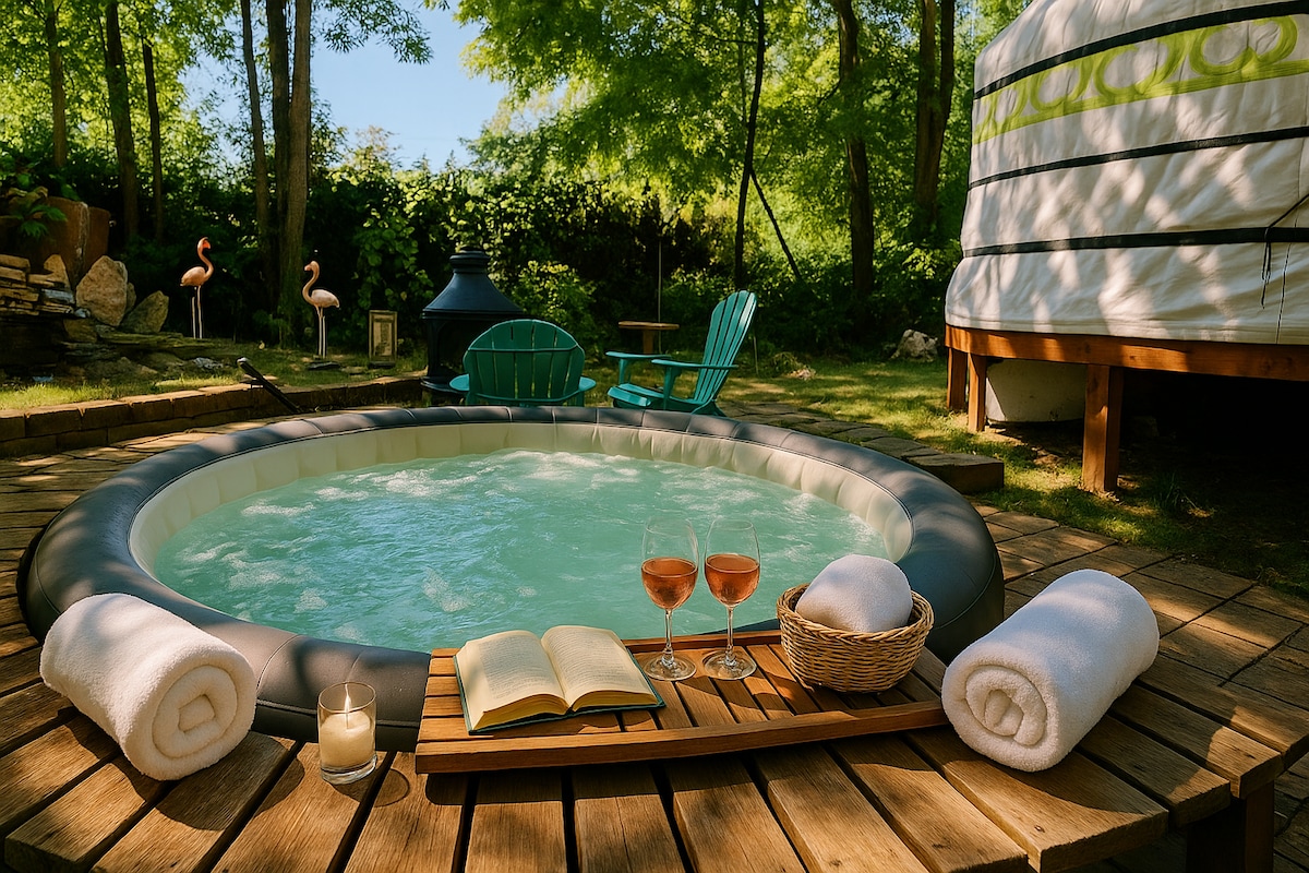 Jurta ideální pro Instagram se Starlinkem, manželskou postelí a vířivkou