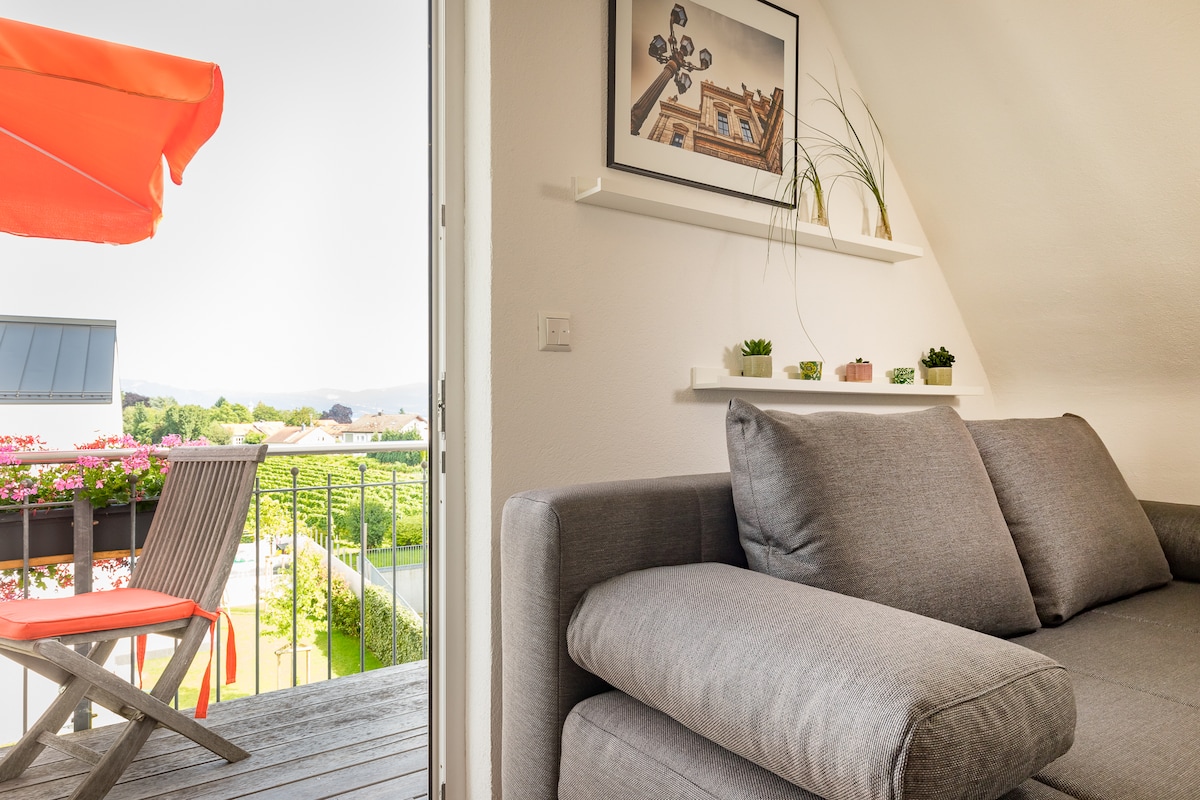 Teta Ida je dobré místo pro příjezd a vypnutí. Čistý klid a relaxace s fantastickým výhledem z velkého balkonu nad Bodamským jezerem do údolí Rýna, od Pfänder po Säntis. Vaše rekreační středisko se nachází na Taubenbergu, nedaleko Lindau a obklopen ovocnými stromy a vinicemi. Užij si dovolenou se sklenkou vína od místních vinařů a dlouhými procházkami podél břehu jezera. Nejoblíbenější místa ke koupání jsou jen pár minut odtud. Těšíme se, až se nám ozveš!