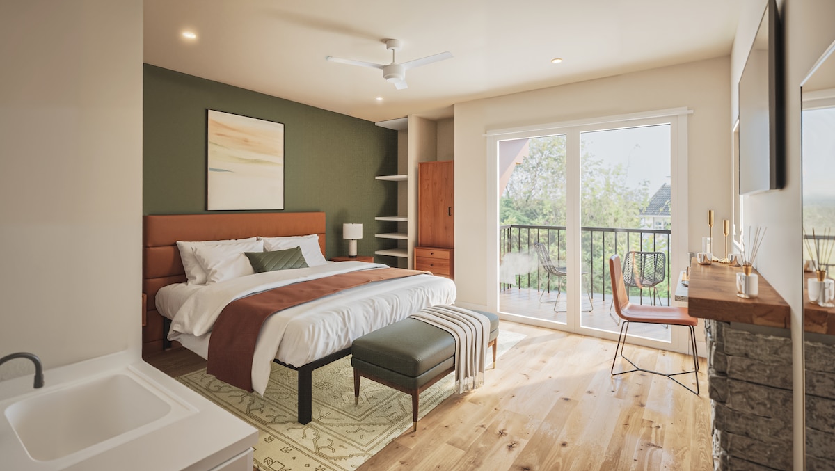 Unwind in our Corner King Suite — a peaceful retreat perfectly balanced between mountain adventures and downtown charm.
