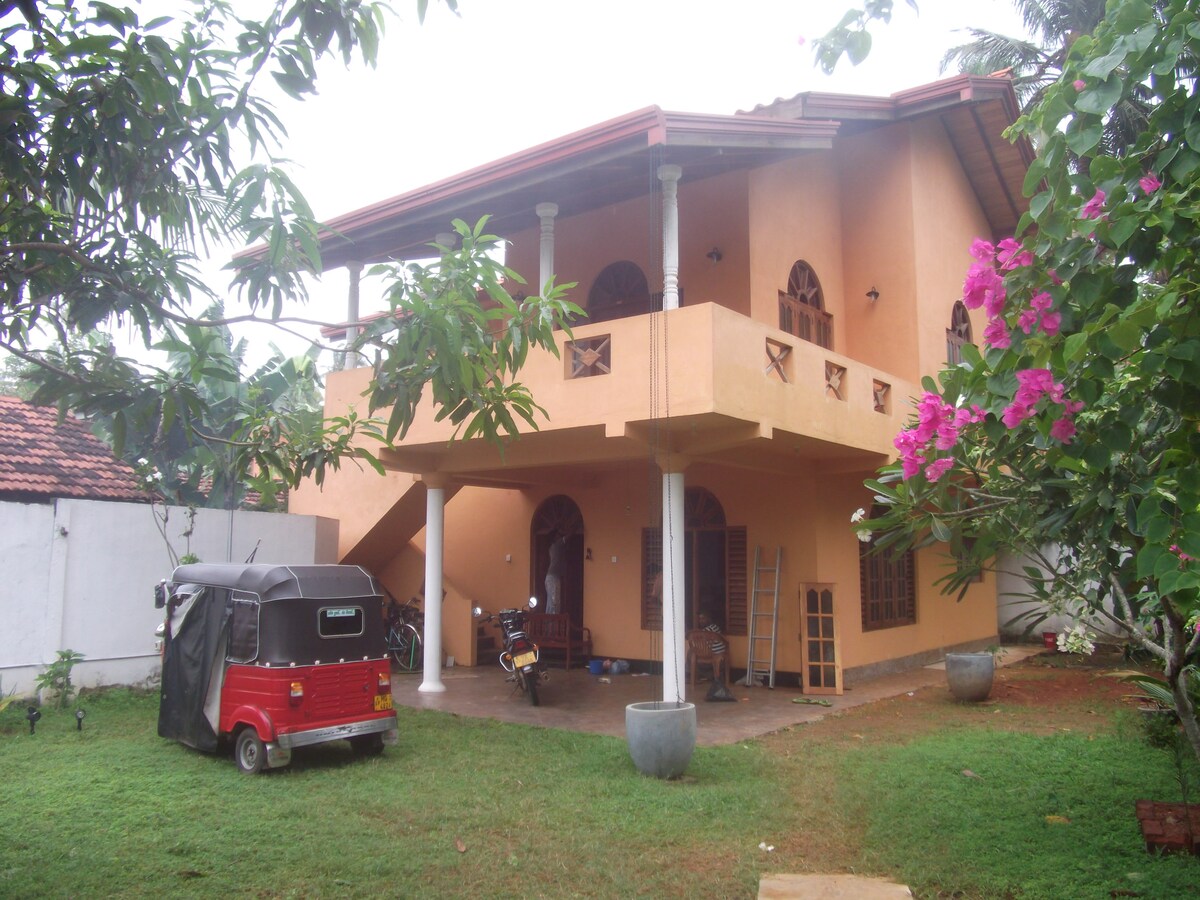 Vysokorychlostní optický internet pro pracovníky na dálku.....Luxusní domov vhodný pro rodiny s malými dětmi s velkou tropickou zahradou s výhledem na venkov a východ slunce. 3 x Prostorné klimatizované ložnice s manželskou postelí, moderní vnitřní kuchyň, 2 x koupelny, venkovní sprcha, otevřený obývací prostor a terasa pro stolování pod širým nebem. Zahrada je rájem pro přírodu a divokou zvěř, jako jsou opice, veverky, pávy a občas i pavouci. Jsme asi 6–8 minut chůze od pláže Mirissa.