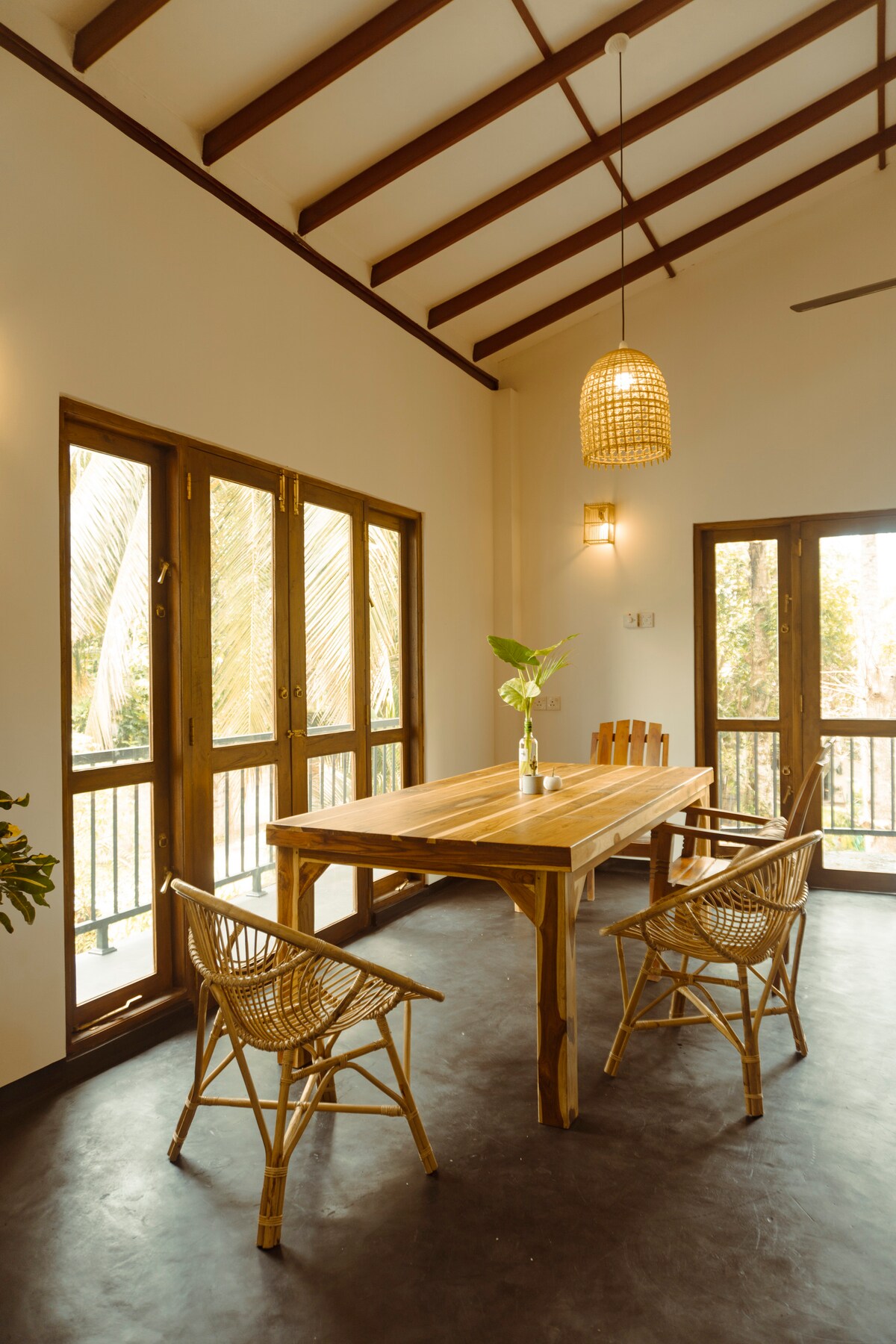Ubytuj se v Hello Mirissa, kde se setkává moderní design s tropickým klidem. Tento luxusní butikový pokoj vybavený klimatizací zahrnuje manželskou postel velikosti king, připojenou koupelnu se sprchovým koutem a soukromý venkovní jídelní kout ideální pro klidné stolování. Ideální pro páry nebo služebně cestující, kteří hledají klid v blízkosti oblíbených atrakcí, jako je pláž Mirissa a plážový klub Kai ve Weligamě. Pokoj je vybaven základním vybavením pro pohodlný pobyt.