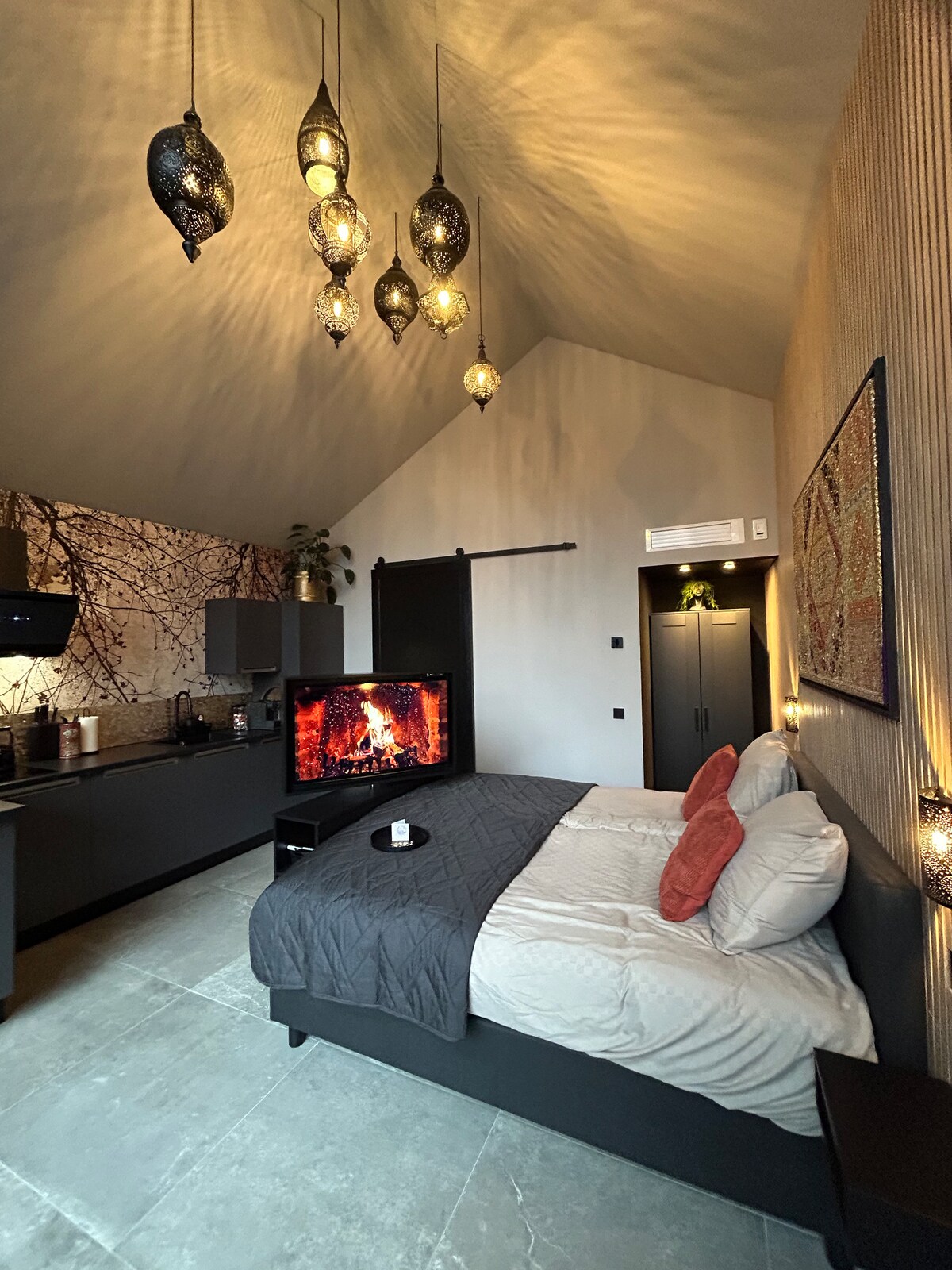 Stylový srub snů! Toto studio má výhled do lesa, z výšky 1,5 metru, je součástí rodinného panství a nachází se 60 metrů od silnice do vesnice Vierhouten. It's not a simple holiday let, but rather a luxury and comfortable zen suite with a stunning view. S rozlehlými lesy a vřesem na dosah ruky, jedním z nejkrásnějších oblastí Veluwe, ne-li v Nizozemsku. Nekonečné kouzelné lesy se speciálním druhem. Lokalita snů pro všechny roční období.