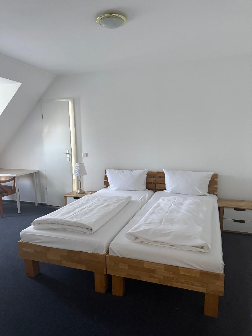 Privatzimmer im Apartment mit eigenem Bett, Arbeitsplatz und Kühlschrank sowie Zugang zu Gemeinschaftsbad und -küche. !! Gemeinschaftsbad !! Handtücher und Bettwäsche vorhanden. W-LAN ist kostenfrei. Es gibt 10 kostenfreie Parkplätze im Innenhof (können nicht reserviert werden). Bahnhof fußläufig erreichbar (ca. 12 min)
