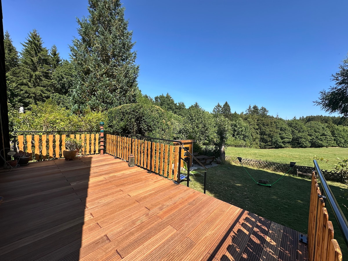 Vergiss deine Sorgen in dieser geräumigen u. ruhigen Unterkunft. In dem 2015 komplett modernisiertem und ständig verschöntem Haus mit 152 qm haben bis zu 8 Personen plus 2 Baby ausreichend Platz , das Haus ist mit Fussbodenheizung, hochwertiger Küche, Waschkeller, Waschmaschine, Trockner, 2 Bäder , 1x Dusche und 1x Dusche u. Wanne. 3 Schlafz. je 1 TV .WLan. . Großer Wohn Essbereich offener Küche, Wohnbereich mit Kamin. Ein schöner Garten, dichter Sichtschutzbepflanzung, überdachte Terrasse.