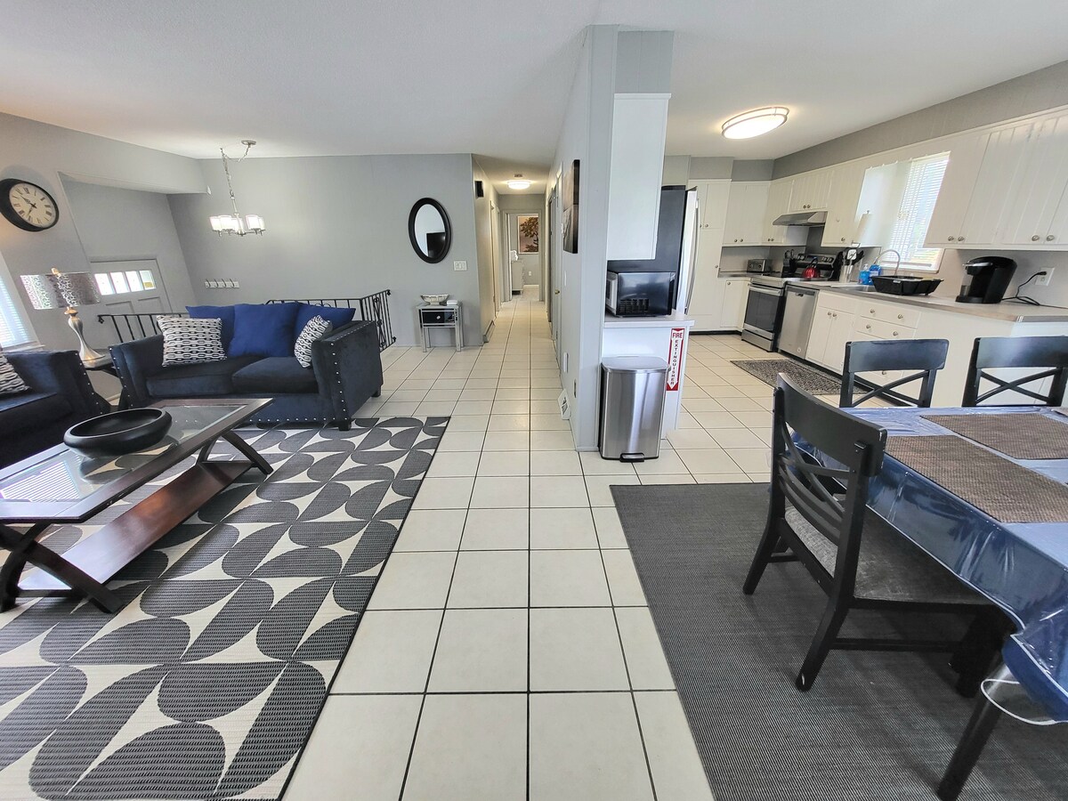 Fully stocked family kitchen. Fantastic views of Narragansett Bay from the front of the home, watch the beautiful sunset and sunrise Walk to the beach and park area at the end of the street. Newly remodeled 3 bed, 2 baths home, decorated and furnished with a quaint, whimsical, nautical Octopus theme throughout. Lower level has a cozy den area with a full bath Located within 12 minutes to T. F. Green Airport, 15 minutes to Providence, (local colleges) and 45 mins. to beautiful Newport, RI.