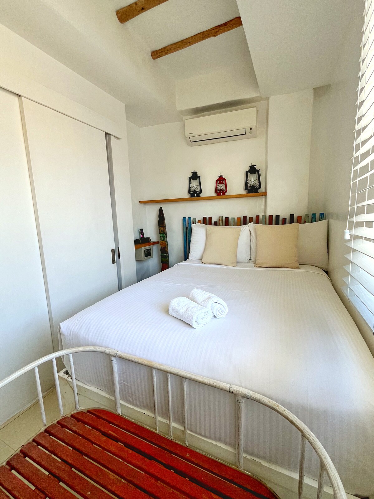 Jedná se O DOT AKREDITOVANÉ pláže přední ložnice je vkusně zařízený s místním uměním a je vybaven konvenčními vymoženostmi, jako je klimatizace, teplé a studené sprchy a TV s plochou obrazovkou. Pozvánka královna postel je oblečena v čisté, bílé prádlo a má minimalistické postranní stoly na obou stranách. Byt má balkon, který nabízí vynikající výhled na Bulabog Beach. Stanice 2 White Beach je necelých 10 minut chůze.