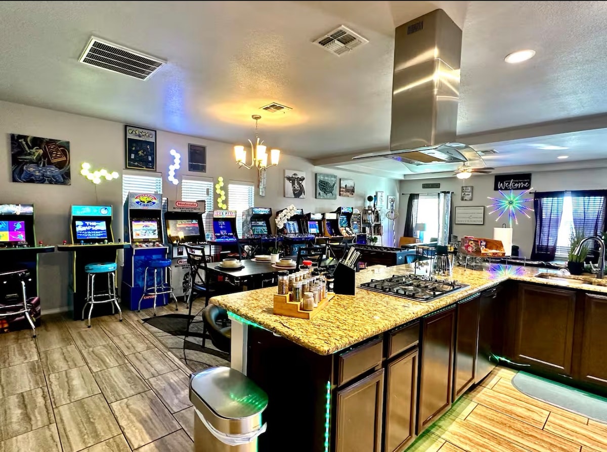 Naše velmi prostorné ubytování je 2 minuty od přístupu na I-10, 2 minuty od Sunland Park Mall, 1 minutu od parku pro děti a cvičení, 5 mil od různých restaurací a obchodů. 10 minut do centra, 15 minut na letiště. 15 minut do základny Fort Bliss. Naše ubytování si zamilujete díky duální jednotce pro vytápění/chlazení v klidné a bezpečné čtvrti. Užijete si pozitivní jedinečný styl našeho domova, který jsme připravili pro všechny cestovatele, jako jsme my! 1.2025 Koupelny byly právě vylepšeny