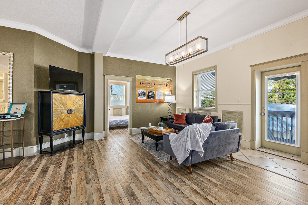 Tento byt v St. Augustine je 5-7 minut chůze od St. Augustine's downtown hub a 15 minut jízdy na pláž. Tento centrálně umístěný byt v přízemí má otevřenou kuchyň a obývací pokoj. K dispozici je malá veranda, která umožňuje hostům sedět venku a vychutnat si ranní kávu. Tento byt má jednu ložnici (manželská postel) s hlavní koupelnou a je ideální pro 2 hosty. ** Jedno parkovací místo na místě a parkování na ulici zdarma pro další auta