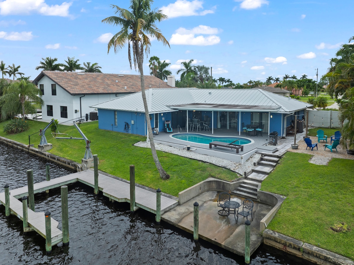 Tento velkolepý 2358 čtverečních stop. Dům na nábřeží Cape Coral překoná vaše očekávání svými luxusními aktualizacemi a bohatým vybavením. Nachází se v klidné čtvrti, ale jen pár minut od nákupů, obchodů s potravinami, restaurací a pláží! Užijte si velkou verandu s vyhřívaným bazénem a vířivkou, venkovní TV a vestavěným grilem. Zahrnuje kajaky, rybářské pruty, plážové předměty, kočárek, soukromé parkoviště, Wi-Fi a tiskárnu. Přístup do zálivu s lodním dokováním.
