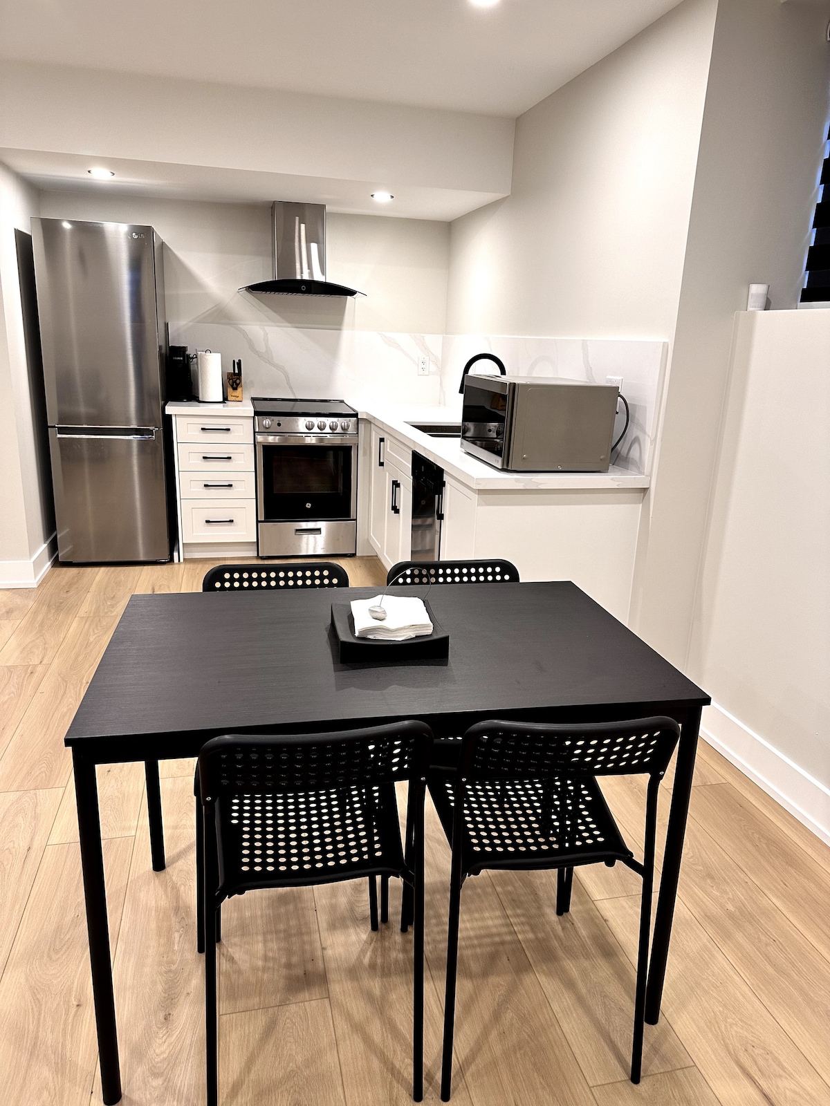 Soukromý suterénní byt se samostatným vchodem. 420 čtverečních stop. Manželská postel velikosti Queen. Velký sprchový kout s dešťovou hlavicí. Mikrovlnná trouba, dvě mini ledničky, kávovar/rychlovarná konvice. Upozornění: není to plně vybavená kuchyně. Jídelní/pracovní stůl s lavicemi. Vysokorychlostní Wi-Fi. Obývací pokoj s polohovací pohovkou Lazy Boy a 50" Smart TV. Více než 1000 živých televizních kanálů a Netflix. Soukromá malá terasa na zahradě se stolem. Soukromá příjezdová cesta (2 auta). 1 minuta jízdy na dálnici 401. 15 minut pěšky na stanici Ajax Go.