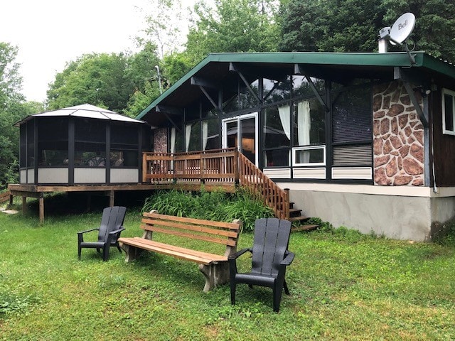 Ponoř se do klidu přírody v naší chalupě Prunella No. 1, srubu ve tvaru písmene A s pozoruhodnou architekturou a promyšleně navrženým interiérem, který se nachází v 75akrové lesní rezervaci, jen něco málo přes hodinu jízdy od Gatineau/Ottawy. Díky společnému přístupu k jezeru, soukromé cedrové vířivce, vnitřní houpací síti, kamnům na dřevo a podlahovému vytápění nastavuje Prunella č. 1 laťku pro nezapomenutelný pobyt. CITQ: # 308026