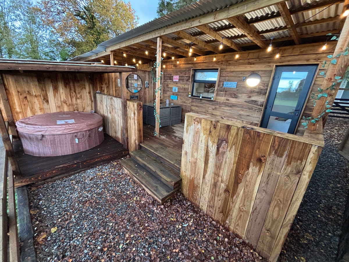 Relaxujte a odpočiňte si ve vířivce na dolním patře a v krásné lesní scenérii. Útulná luxusní chata. Velká moderní koupelna. Ložní prádlo z egyptské bavlny, župany Plně vybavená kuchyně s mikrovlnnou troubou, kávovarem Nespresso, toustovačem. Vícekanálová televize, rychlá wifi, wifi, bluetooth JBL reproduktor. Vracíme se na horu Carrig, skvělé túry / procházky. Zahrady Mount Usher 15 minut, Glendalough 25 minut, Brittas Bay 10 minut Samoobslužný proces ubytování Snídaňový košík každé ráno