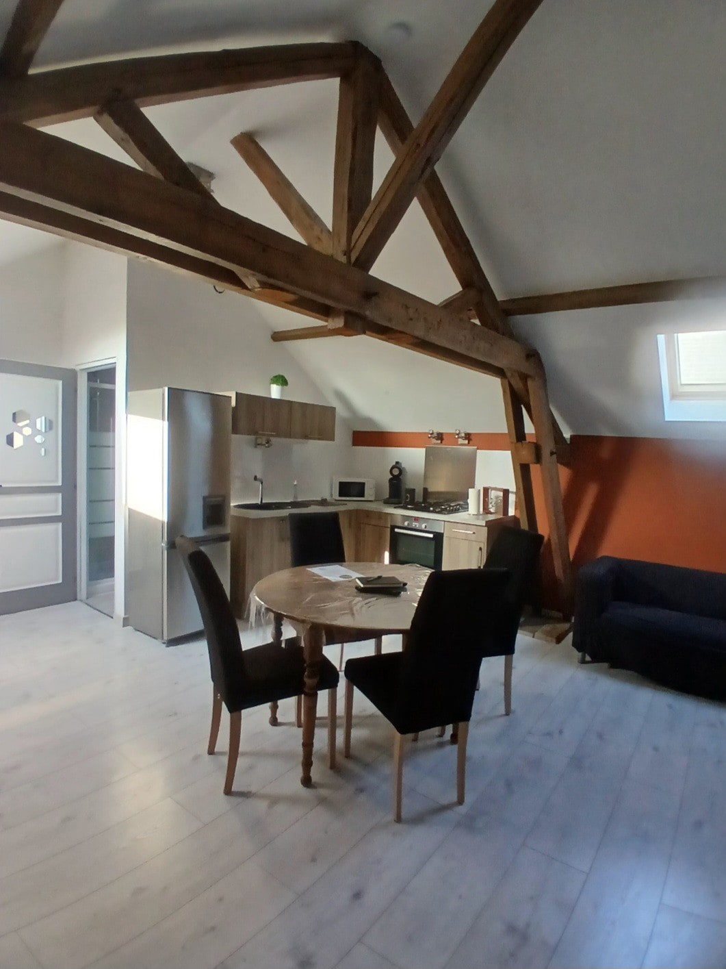 Pro 4 cestující, velký nový apartmán o rozloze 40 m2 s terasou s krásným výhledem na venkov Thiérachienne, orientovaný na jih. K dispozici je koupelna, sprcha, sušička na ručníky, 1 prostorná ložnice s manželskou postelí a velkým šatníkem, krásný obývací pokoj s 1 rozkládací pohovkou (při rezervaci upřesněte, zda ji chcete použít jako postel) a vybavená kuchyně. Ideální pro služební cesty, víkendový pobyt pro páry, rodiny nebo přátele. Dvůr a velké uzavřené parkoviště pro auta nebo jízdní kola.
