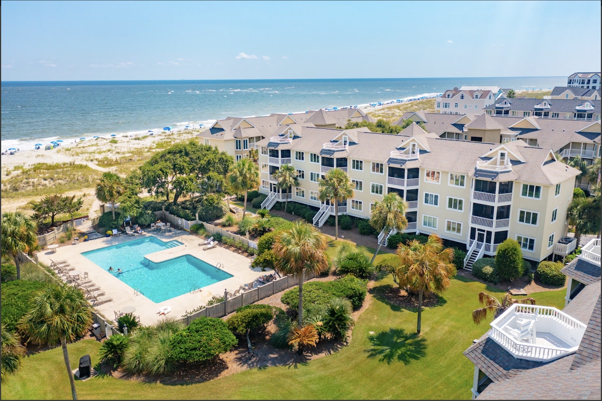 Make your next vacation unforgettable with a stay in our charming beachfront condo with private beach access, pool (unheated but open year round), & the only pier in town! Watch the sunrise from the balcony or take a stroll along the beach to feel the sand between your toes. After a day of sunbathing, your fully equipped kitchen & comfortable living room provide the perfect setting for enjoying a family meal or game night. Don't feel like cooking? The shops and restaurants of IOP are steps away!