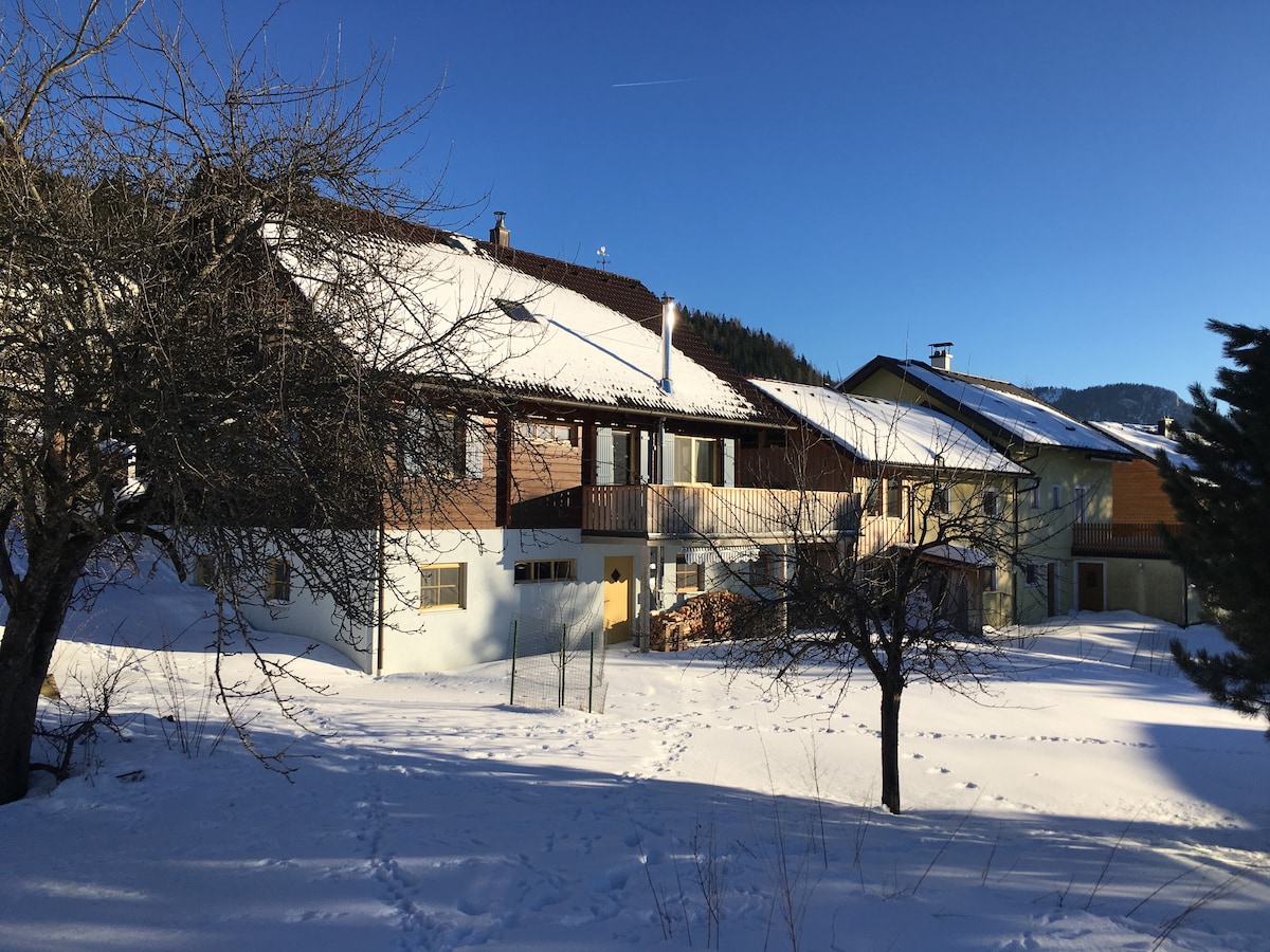 Eintauchen in die Natur, Kraft tanken und Ruhe genießen. Ihre Wohnung ist über eine Aussentreppe erreichbar und befindet sich in einer ruhiger Lage, ohne Trubel und Lärm. Ausgangspunkt für viele Wanderwege und Ausflugsziele, direkt am Weg zum Lugauer. Für ihre Kinder ist genug Platz um zu Spielen , Tiere streicheln und beobachten. Zum Entspannen haben sie am Waldesrand Sitzgelegenheiten und Platz zum Grillen.
