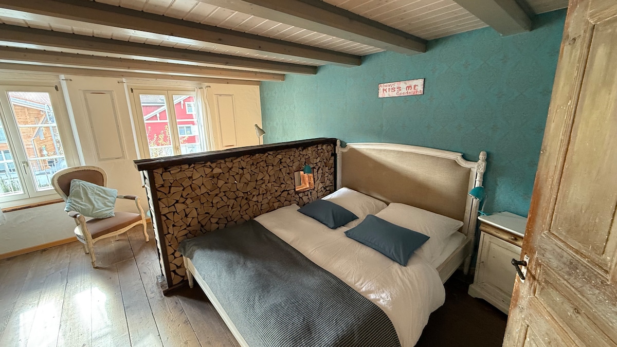 Náš tyrkysový apartmán se nachází v historické budově z roku 1899. Část mezi lůžkem a obytným prostorem je oddělena dřevěnou stěnou, která vám poskytuje útulný koutek. Z pohodlných křesel máte výhled na Jungfrau a Mönch. Ideální místo pro zakončení dne se sklenkou vína. V kuchyni a koupelně najdete naši marockou podlahu, WiFi je k dispozici. Uvedená cena zahrnuje závěrečný úklid, turistický poplatek, ložní prádlo a ručníky.
