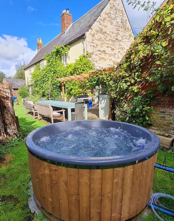 This characterful 17th Century farmhouse is located on the edge of the historic village of Heddington, 17 miles west of Marlborough and three miles south of Calne. The Grade II listed house lies between the pretty village church and the open countryside at the foot of the Downs. Area of Natural Beauty. Suitable for hen parties & family gatherings; peaceful and private, this beautiful home provides the perfect setting for precious get-togethers, of families & friends. ... Darling Buds of May!