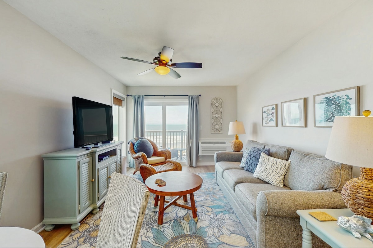 Your perfect oceanfront getaway awaits in our beautiful condo, located in the family-friendly Windy Hill section of North Myrtle Beach, known for its relaxed, family-friendly atmosphere. You are just steps from the beach and a short, convenient drive from the popular shops, dining, and entertainment at Barefoot Landing. Step inside and be greeted by stunning views of the pool and ocean through large living room windows. The space is designed for relaxation and making memories.
