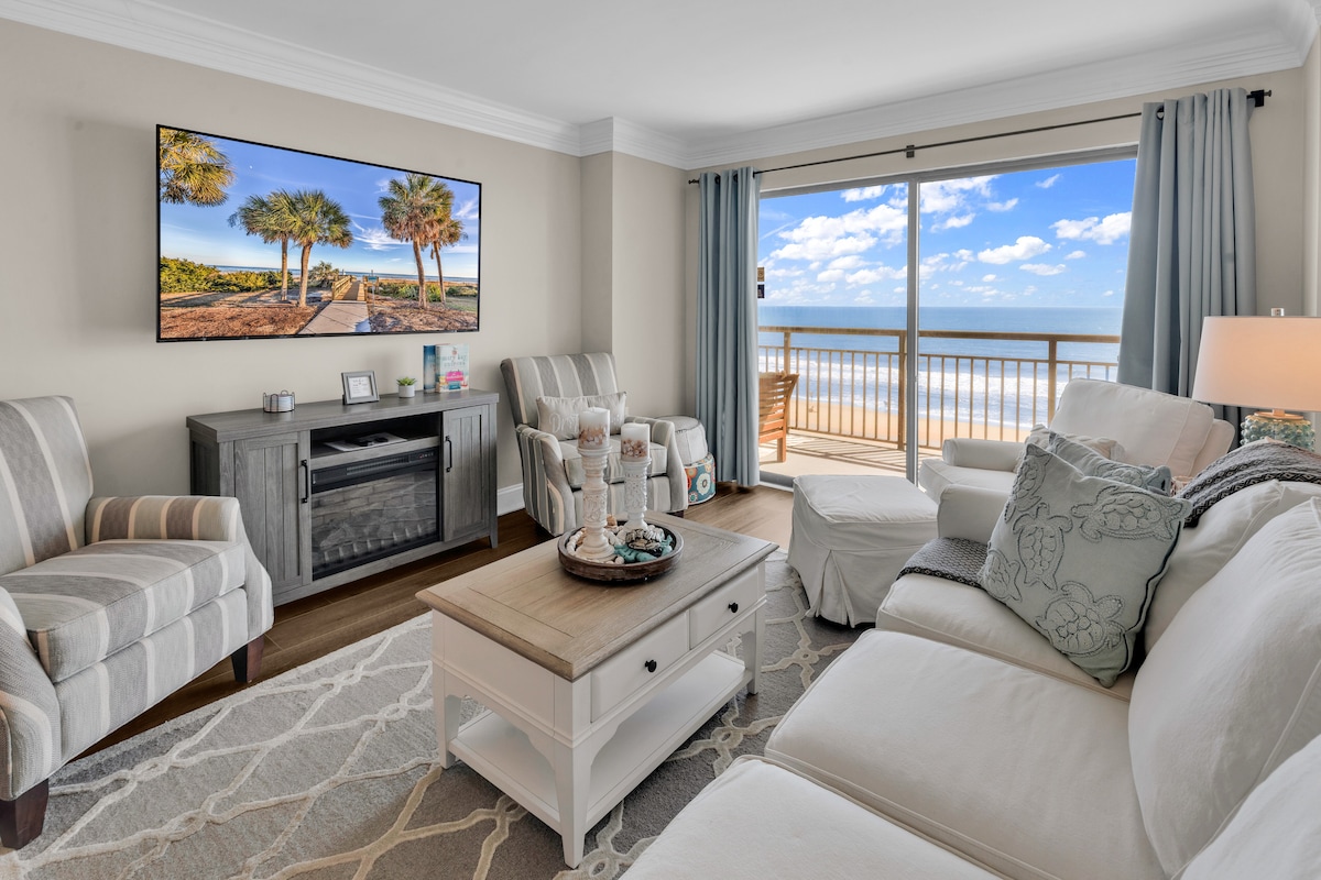 CALLING ALL SNOW BIRDS....INQUIRE ABOUT OUR MONTHLY SPECIALS for November-February Seas the day is a perfect couple or family of 4 getaway in our home away from home:) Wonderful memories are sure to be made here. Our one-bedroom with King bed, new sleeper sofa (queen bed), Oceanview with private patio, full kitchen and fireplace, what more could you ask for! You will surely feel right at home with all the comforts, yet know you are on vacation with the sound/sights of the ocean waves and breeze