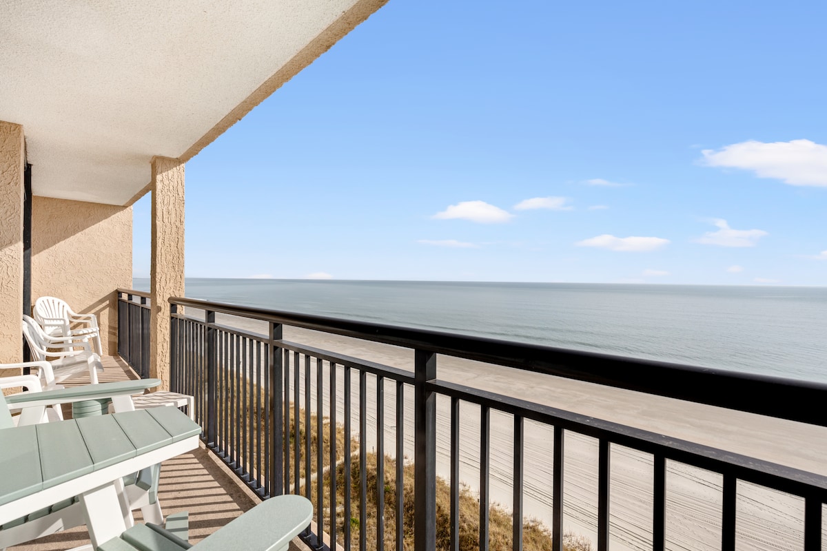 RENOVATED OCEANFRONT! BRAND NEW Kitchen with quartz countertops! Imagine drinking your morning coffee with THIS View! 3 bedroom, 3 FULL BATH condo! Sleeps 8 with 4 beds and 2 twin floor mattresses. A quiet beach with attractions within reach! Barefoot Landing with shops, restaurants and musical entertainment less than 1 mile away. Visit numerous golf courses, Broadway at the Beach, Tangier Outlets, Carolina Opry, Pirate's Voyage, putt putt golf just minutes away.