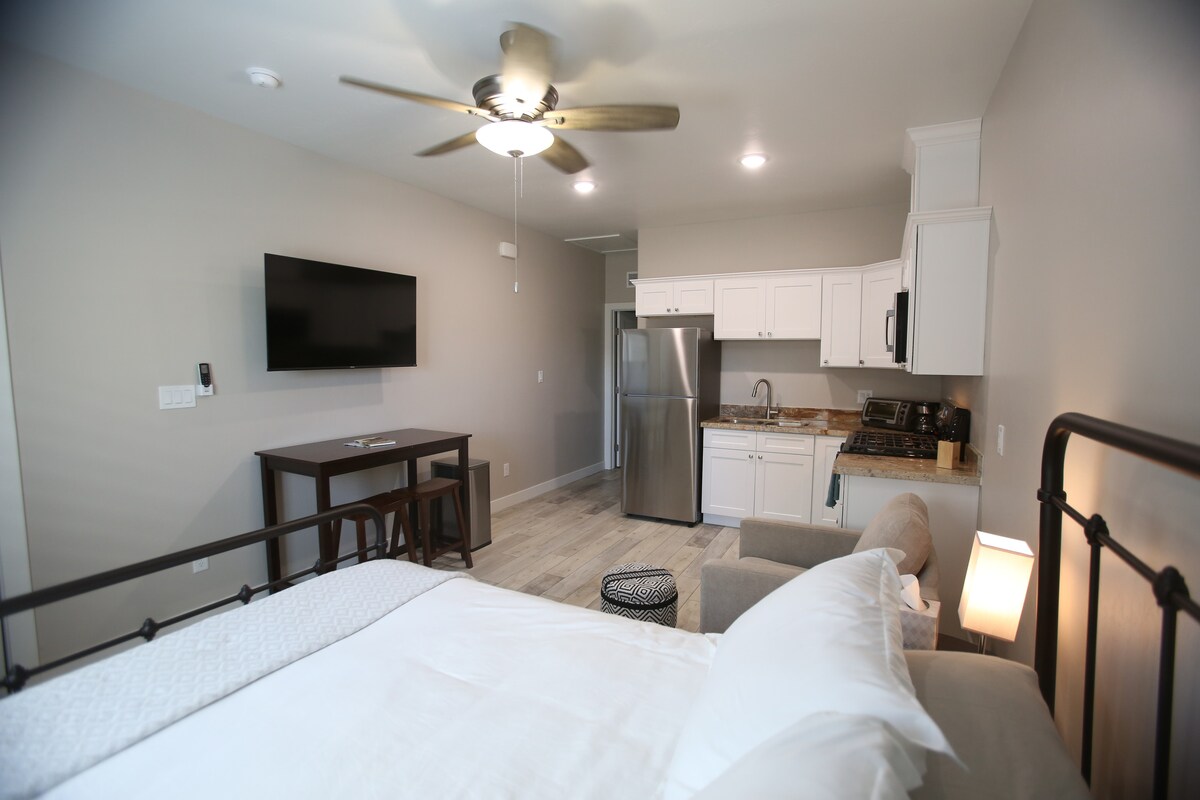 Dej si nohy na stůl a odpočiň si v tomto klidném, malém moderním ubytování nově postaveném v historickém Century Heights. Noční život v centru Yumy v dosahu chůze. Nákupy, restaurace, bary, zábava v okolí. V pěší vzdálenosti od řeky Yuma Colorado. •10–15 minut jízdy do Los Algodones v Mexiku 🇲🇽 Perfektní místo pro zdravotnické pracovníky přijíždějící do Yumy. Minutu jízdy od regionální nemocnice Yuma, nákupního centra, atletického komplexu a MCAS. Plně vybavená kuchyně pro delší pobyt, s vlastním příjezdem pro parkování.