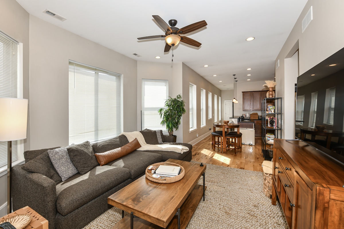 Tento útulný klidný byt je jemně osvětlený měsíčním svitem dopadajícím na hodinovou věž Allen-Bradley Rockwell Clock Tower, maják v trendy a historické čtvrti Walker's Point v Milwaukee. Odpočiň si na balkoně a užij si výhled do zahrady a občerstvení. Vydej se na procházku nebo na kole Bublr a objev skvělá jídla, vyrobená piva a lihoviny. V blízkosti: HD Museum, Fiserv Forum, AmFam Field, divadla, muzea a jezerní břeh. Přivítej sólové dobrodruhy, páry a bizni cestovatele! Snadný přístup k dálnici Interstate, Airport a Amtrak.