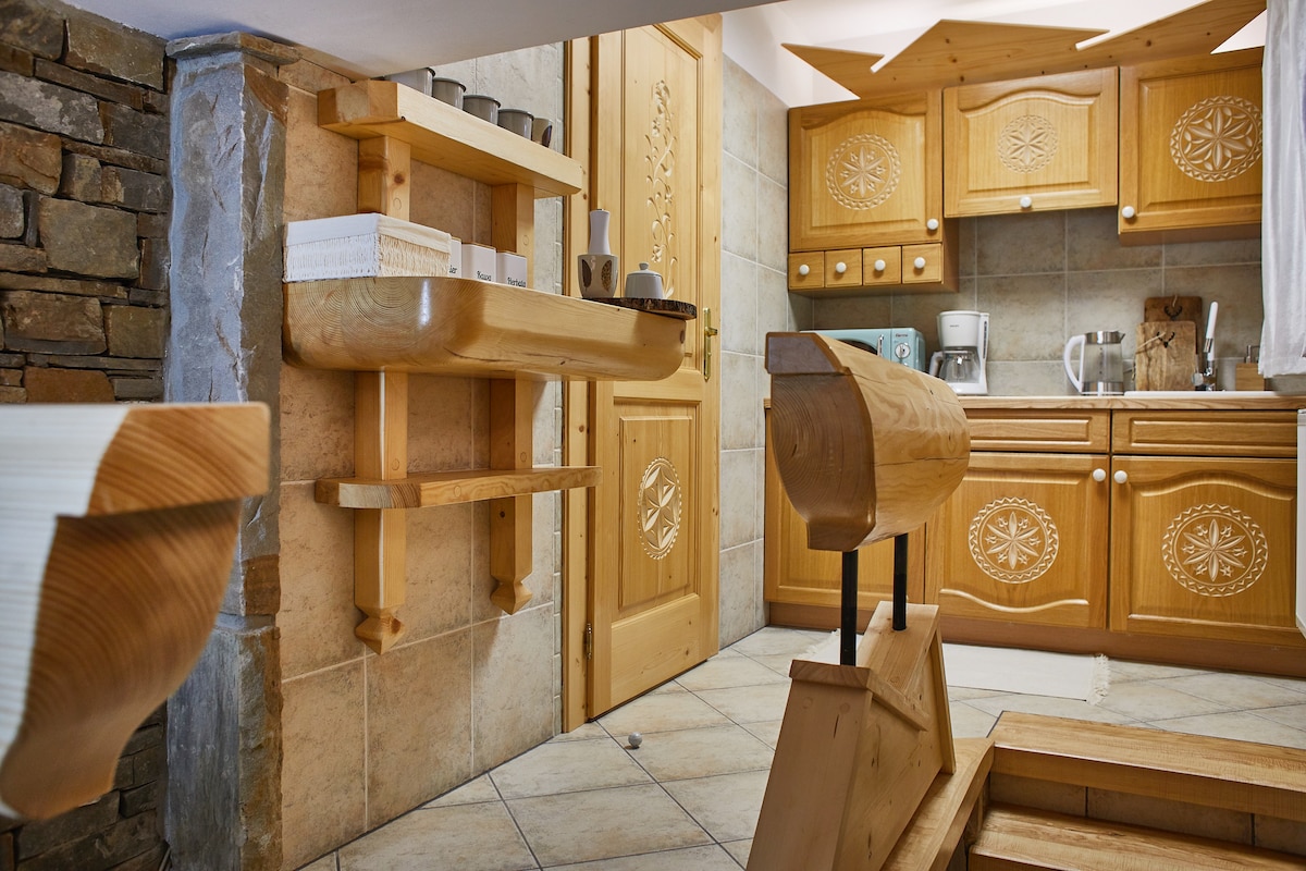 Horna Koliba je krásný dům postavený ve stylu horalů. Postaveno z masivního dřeva, pokryté dřevěnými šindelemi s krásnými horskými detaily - dům vypadá jako z obrázku. Obývací pokoj se spojuje se skleněnou verandou, díky čemuž interiér získává originální a útulný charakter. Krb vás uvede do romantické nálady jak v zimě, tak v létě. Idylické výhledy a intimní atmosféra vám pomohou zapomenout na každodenní problémy a vžít se do této jedinečné atmosféry.