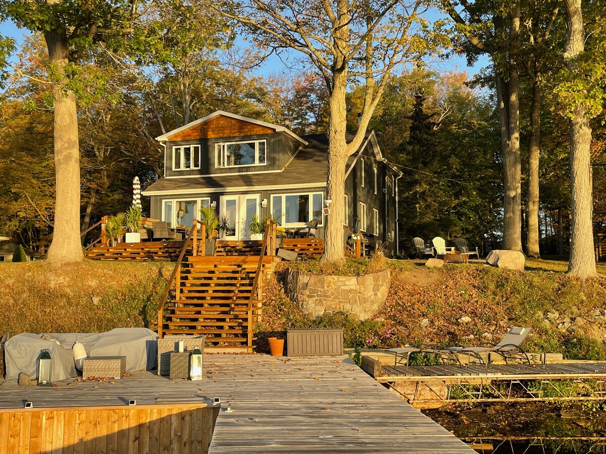 Nový stavební dům navržený speciálně s ohledem na hosty s výhledem na řeku Saint Lawrence. Užij si nezapomenutelný podzimní nebo sváteční pobyt v této oáze na nábřeží. Zvýrazňující tento domov je velká hlavní ložnice s výhledem na četné ostrovy skvrnité po celém rozlehlém výhledu na vodu. Venkovní ohniště a grilovací prostor budou připraveny na podzimní sezónu. Projdi se naší cestou k svému soukromému nábřeží. Skvělé místo pro páry, malé rodiny nebo přátele, kteří se scházejí