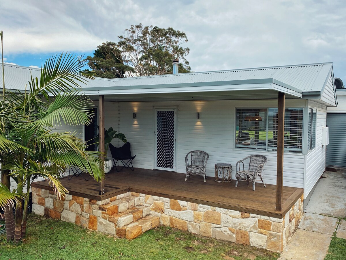 A slow stay in a sleepy beach town. A perfectly imperfect little cottage located in a stunning beachside location. Equipped with everything you need to feel right at home. Minutes walk to the local beaches and the lake (with playground and barbecues). A lovely large backyard, with shaded areas and fruit trees growing along the fence line. Forage for fruit and enjoy juicy mandarins! A warm outdoor shower and internet. *Internet may be slow and reception poor during busy times.