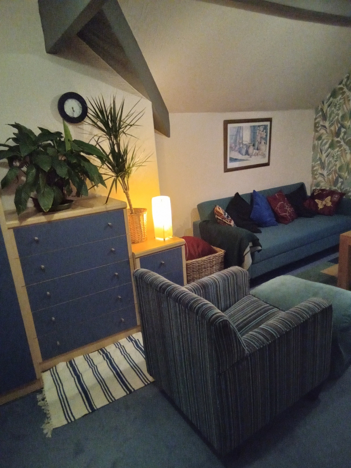 Nachází se v zahradě našeho domu se soukromou zahradou pro hosty. Přístup brankou do lesa a Lythamu. kuchyně s mikrovlnnou troubou, toustovačem, rychlovarnou konvicí, lednicí, dvouplotýnkovým vařičem, kávovarem. Ložnice s manželskou postelí, dveře do zahrady. Sprchový kout s vyhřívaným věšákem na ručníky, umyvadlem a toaletou. Salonek s TV, jídelním stolem a pohovkami. Krásné venkovní posezení s výhledem do lesa. Nabíječka na elektromobil za příplatek. Máme nejlepší dostupné širokopásmové připojení, ale může být ovlivněno počasím.