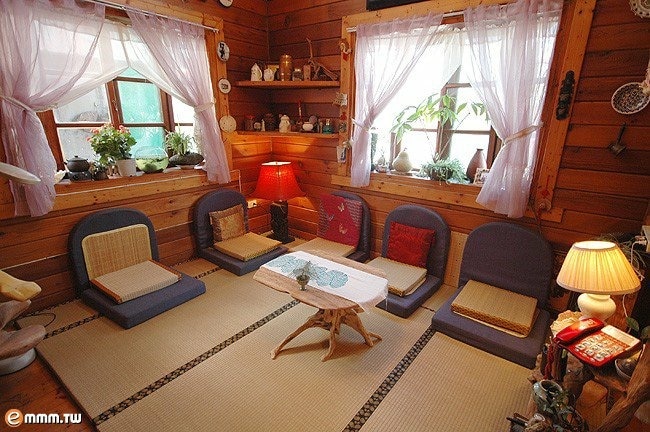 Jarní třešeň květ, letní tráva květ, podzimní skořicový květ, zimní švestkový květ, chata má mnoho krásných objektů z celého světa, celá stěna knih, všechny návrhy jsou od majitele, doufá, že sdílet naše životní estetiku s hosty.