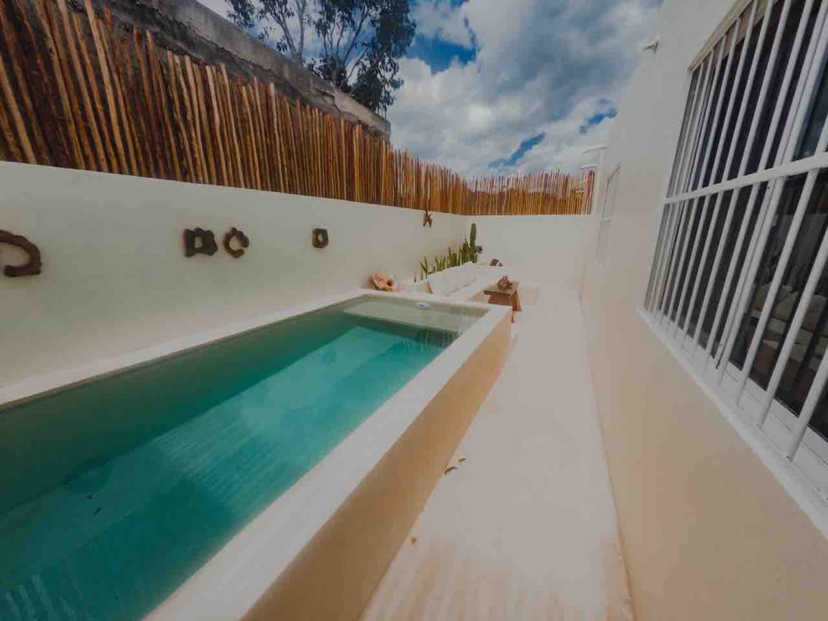 Vítej v našem útulném domě v kouzelném městě Valladolid! We are a 5-minute drive from the historic center and 3 minutes from the Zací cenote. Vyrobeno z kamene a tropických lesů, s prostornými a svěžími interiéry, centrálním nádvořím s osvěžujícím bazénem a ovocnými stromy, které vytvářejí relaxační atmosféru. Velká manželská postel, klimatizace v pokoji, vana, wifi, vybavená kuchyň, bazén k dispozici 24 hodin denně. Objev perfektní místo pro svůj pobyt v Sureña!