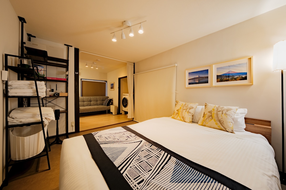 こんにちわ、Mickyです☀️ 河口湖駅から徒歩10分のアパートメントタイプの宿です。 アパート二階からの富士山の眺めはとても綺麗で、撮影スポットです☺️ コンビニ徒歩3分。 遊園地の富士急ハイランドも1駅でとても好立地。 部屋は私のこだわりで和室は桜柄の壁紙を天井まで張り巡らせました。さらに日本の伝統的な七宝柄や光が当たると金色に輝く壁紙もとても美しいですよ。畳を使った椅子や盆栽などのインテリアもあり、日本の【和】空間を存分に楽しんでいただけます。 部屋は4人まで宿泊可能です。 お子様用の食器や枕も準備しています。 ベッドは2メートルのとても大きなサイズで(2人)、畳にお布団を敷いて寝ることも可能(1人)。さらにおしゃれなソファをベッドにすることも可能。 日本の魅力を詰め込んだ室内と日本が誇る富士山を存分にお楽しみくださいね! ありがとう ※予約後、専用のシャワールームを案内します。また、シャワールームへ行くのに一度部屋の外に出て、隣の部屋へ移動する必要があります。少しだけ共用の廊下を通りますが、ほとんど他のゲストと顔を合わせることはないので、安心してください