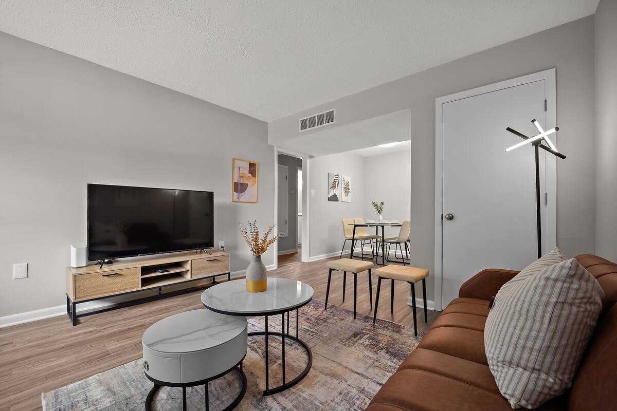 This newly renovated apartment is ideally located just 10 minutes from Amazon job sites, making it a fantastic choice for construction workers or business travelers. Vstup dovnitř a objev prostorný obývací prostor plný zbrusu nového nábytku, který je navržen pro pohodlí i styl. Ať už odpočíváš po dlouhém dni nebo pracuješ, ubytování ti přijde lákavé a funkční.