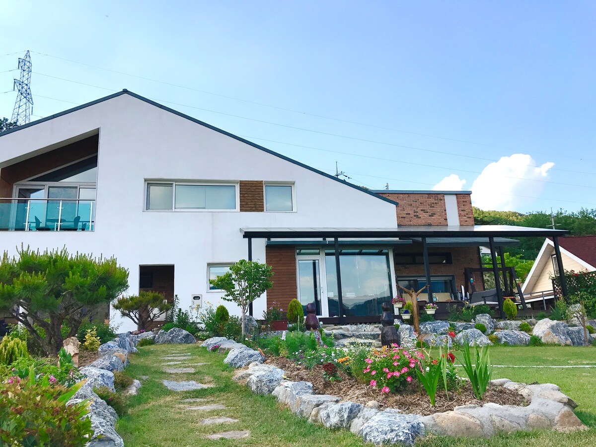 Jelikož se jedná o špinavý dům vyrobený z přírodních materiálů z domácích borovic, borovic, cedrů a domácích mazlíčků, je každá z kaplí vybavena koulemi a oheň je odříznut dřevem. Jedná se o tradiční korejský zemský dům s krásným výhledem na noční oblohu s velkým oknem v místnosti. Pokud chceš všechno na jeden den odložit a setkat se v rušném každodenním životě, takže pokud si chceš odpočinout, udělej si výlet a získej svůj domov do záliby přírody. ^ ^ Happy ^ ^ The Grass Leaf★ Sound Room je vhodný pro 2 dospělé + 1 dítě. Více než 3 dospělí, zvuk vody je vhodný. Toto je Earth House★ na Airbnb a nabízí ondol a peřiny namísto postelí. V závislosti na★ ročním období ti poskytneme bezplatné využití zahrady, zeleninu a ty můžeš grilovat.