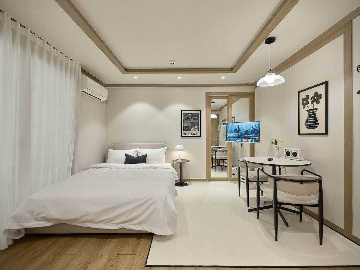 Vnitřní město Andong (14 pyeong) Wolyeonggyo / Hahoe Village Samoobslužný check-in, obývací pokoj, pokoj, kuchyň, toaleta, parkoviště, Netflix