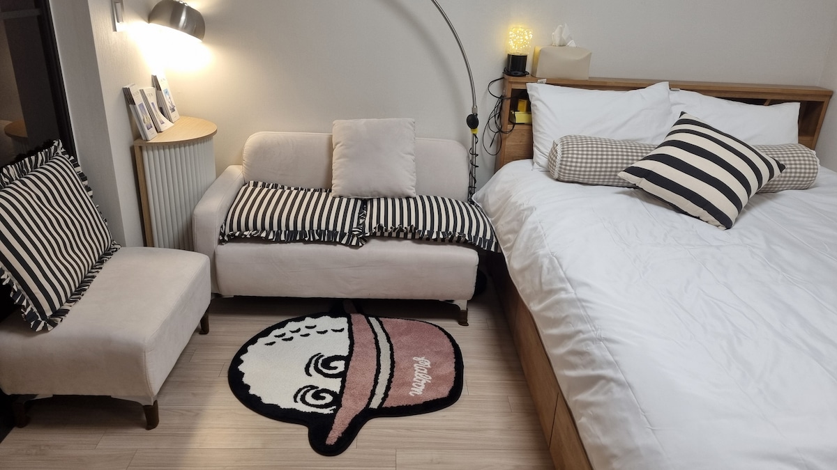 퀸배드 1, 슈퍼싱글배드 1,의자 3개, 식기류 3세트 [Couple /Triple] Cozy 2-beds and 3/4 bath (1 Queen bed, 1 Super single bed) Connect to Subway stn. *Government Authorized* - Super Safe Guest house ▣ 무료(Free): WiFi, 유튜브,건물내 주차 ▣ 웰컴티 제공(네스프레소 캡슐커피머신),생수제공, 암막커튼,손소독젤,삼푸,린스,바디워시,일회용 수세미, 빨아쓰는 행주,무드등 ▣ 냉장고,드롬,커피포트,헤어드라이어,청소도구(요청시 제공) ▣달빛축제공원역 : 도보5분 ▣달빛축제공원에서 산책 ▣식당,카페, 편의점등 건물내 입점 ▣냉방&난방 안내 2025년 4월 17일 난방 종료 / 4월 21일 냉방 시작 추후 일정에 따라 날짜 변경될 수 있는 점 양해 부탁드립니다. ▣ 야외수영장개장(5.24일~9월 운영종료)