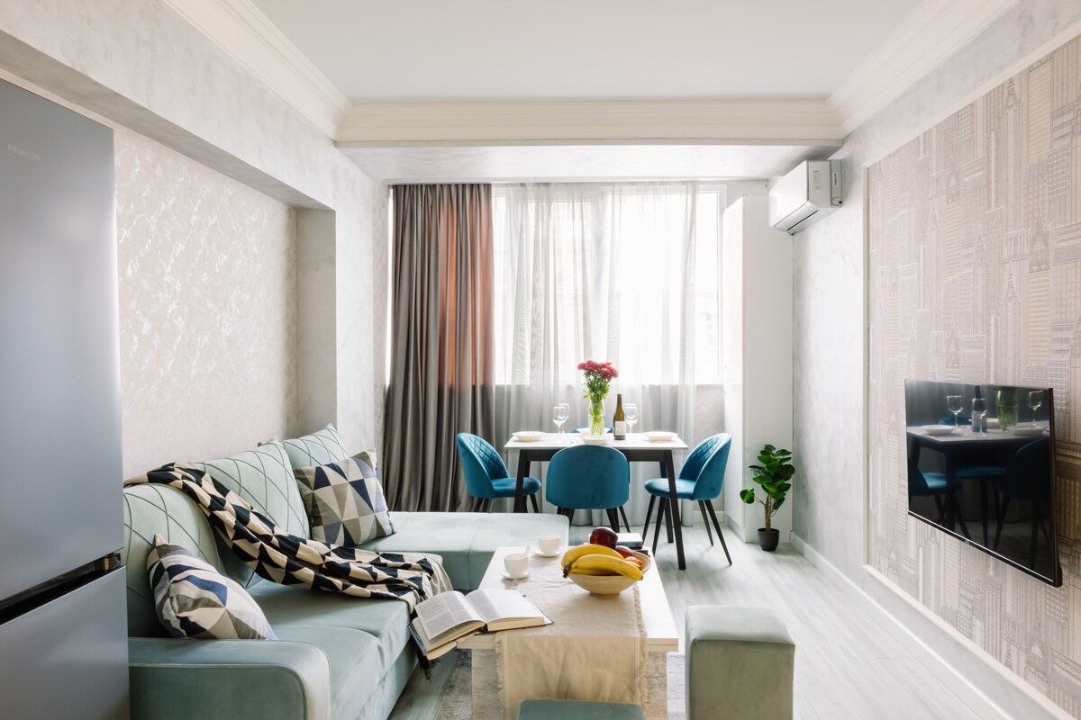 Moderní a prostorný dvoupokojový apartmán, který se nachází v samém srdci Jerevanu na křižovatce ulic Puškina a Maštoca, dvě minuty chůze od Severní třídy, Opery a náměstí Republiky. Je to dobrá volba pro ty, kteří přijedou do Jerevanu, a to nejen kvůli obchodním jednáním, ale i jako turisté. Otevřený balkon je ideální na ranní kávu nebo večeři.