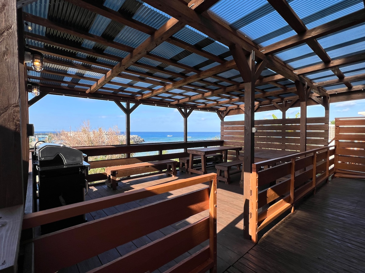 Nově postavený dům postavený v září 2022 na útesu s 340stupňovým výhledem na oceán. Všechny pokoje o rozloze přibližně 100 metrů čtverečních mají výhled na oceán. Pro hosty je k dispozici ubytování ve 2. patře a grilovací terasa na střeše ve 3. patře. Každý pokoj má televizi s úhlopříčkou 50 palců a více a v obývacím pokoji je 4K projektor a velká obrazovka, takže si můžete pustit film. Na střeše, která je spojena s venkovním schodištěm, se nachází grilovací terasa, kde si můžete vychutnat východ slunce, výhled na oceán během dne, západ slunce, noční výhled, hvězdnou oblohu a měsíc. Uzdraví vás výhled na moře a přírodu. Střešní terasa je vybavena toaletou, kuchyňským koutem a umývárnou. K dispozici je 8 zásuvek a je možné vařit pomocí IH. V obou ložnicích jsou dvě manželské postele, takže se zde může ubytovat až 8 osob. V obývacím pokoji je také prostor pro jednolůžko. Doporučujeme pro páry, manželské páry, rodiny a výlety pro tři generace. Okolí je velmi klidné a v noci můžete slyšet zpěv hmyzu, volání sov a zvuk vln, pokud budete poslouchat pozorně. 10 minut jízdy autem vás zavede na silnici, která vede přímo do moře, takže je to ideální místo pro milovníky vodních sportů.