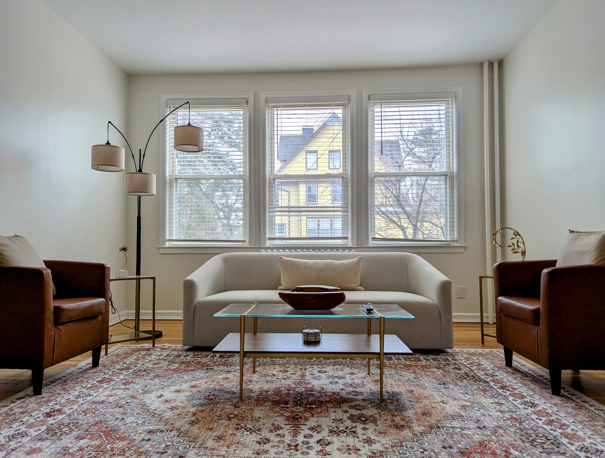 Vychutnej si stylový zážitek z ubytování v centru dění. Nachází se v prominentní oblasti Monastery Heights v Yonkers. Nedávno zrekonstruovaný viktoriánský dům vám poskytne charakter a kouzlo starých časů se stylem a moderním vybavením dneška. Kontrolní seznam úklidu● CDC ● Káva, smetana, filtrovaná voda ● Luxusní spotřebiče Včetně ● Netflix, Hulu a Disney+ ● Rychlá wifi ● Psací stůl ● Skládací postýlka ● Samoobslužný proces ubytování ● Soukromé parkování ● 1 manželská postel, 1 dvoulůžko ● Luxusní ložní prádlo ● Gurmánská kuchyně