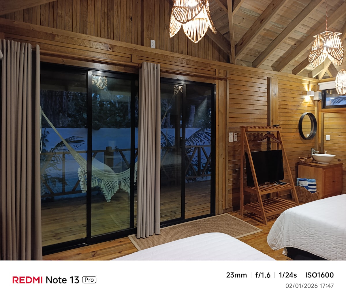 Odpoj se od svých obav v tomto prostorném a klidném prostoru. Jsme uprostřed džungle, kde je nejbližší civilizace vzdálena 40 minut autem. Máme solární panely s příslušnými bateriemi a 100% přírodní vodu ze studny. Uslyšíš pouze jazyk přírody, obklopený stromy, ptáky a zvířaty v jejich přirozeném prostředí. Počasí, které můžeš poznat jen tehdy, když tu budeš. Vyzvedneme tě a zase tě dovezeme (za příplatek)