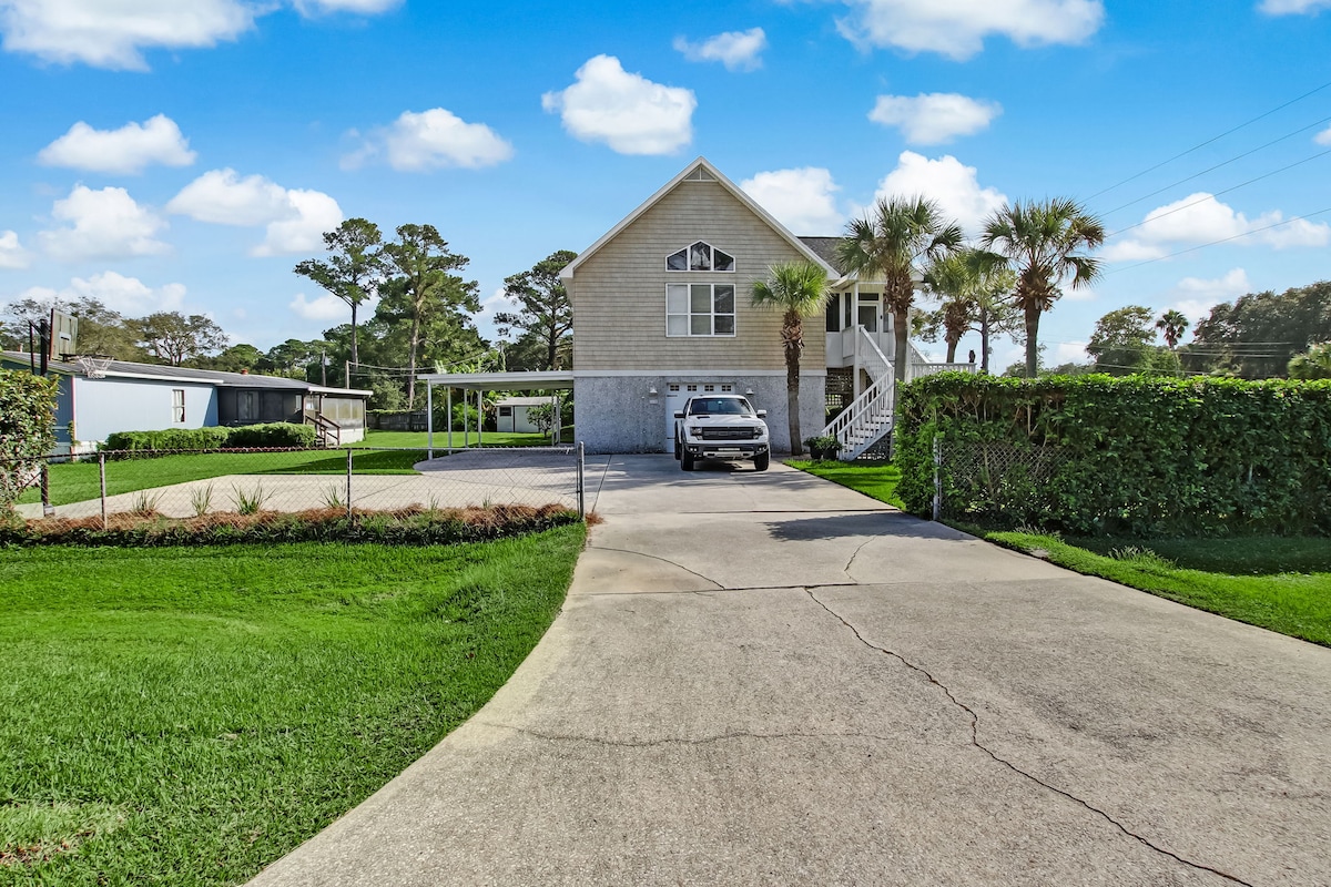 Dokonalá lokalita!! Rustikální dům na chůdách. spousta parkovacích míst a pod domem chráněné parkoviště. Pokud hledáš klid a ticho, tento krásný domov je zasazen, aby ti poskytl/a dostatek soukromí. You will be able to walk out to the back verand and watch nature take place with all the birds, squirrels, sowls and occasional hummingbird. Jsi v okruhu několika mil od historického centra Fernandiny, pláží, nedotčených pláží
