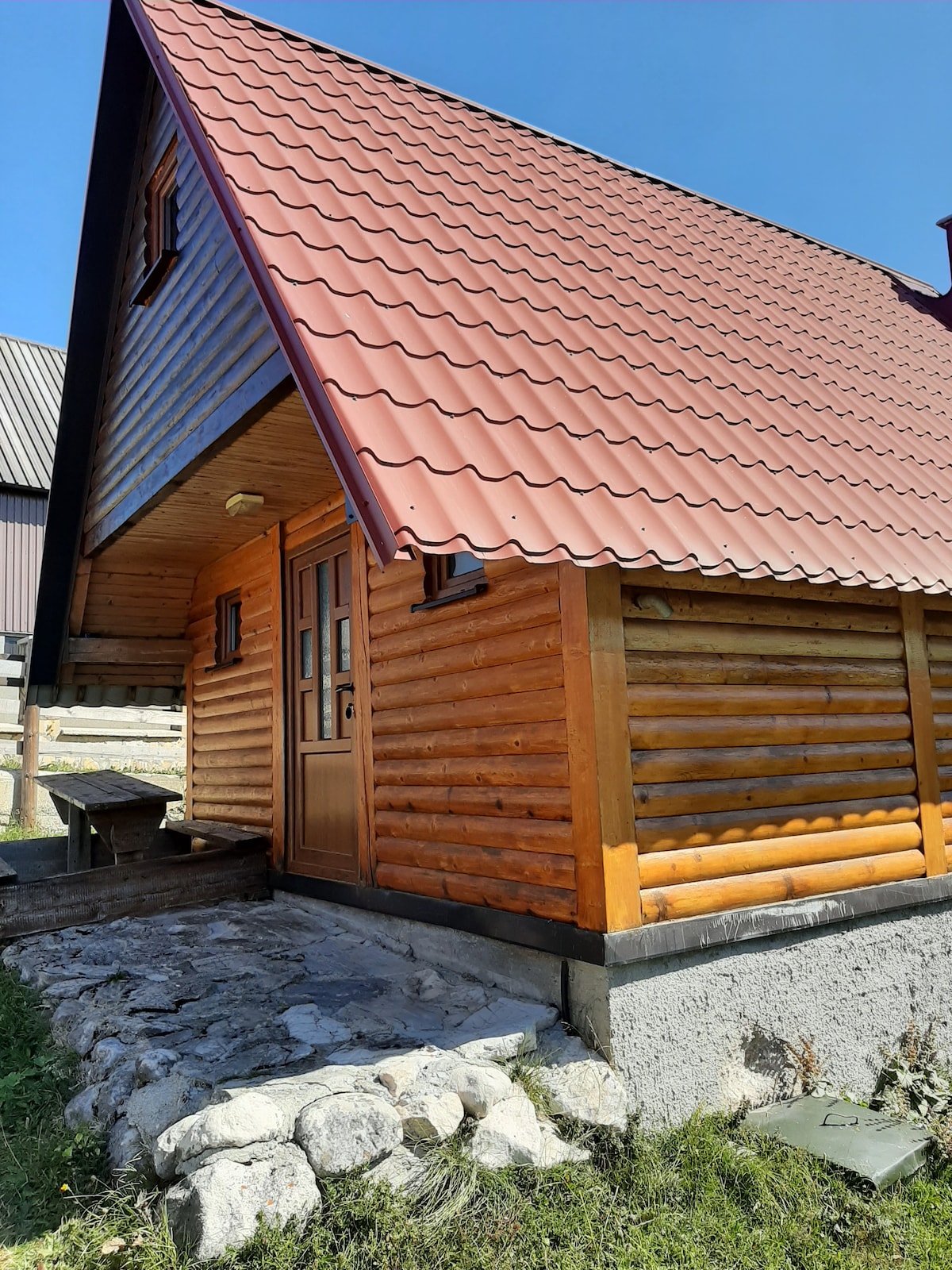 The cabin is located in beautiful nature, near the birch forest, below the mountain peak Štuoc, overlooking the mountains. The cabin is made entirely from the wood. We are the perfect starting point for all your adventures if you are planning an active vacation because with us you can hire a guide for hiking tours, sightseeing and visiting places hidden in the heart of our village, as well as book rafting or canyoning in season. We also offer an outdoor sauna for additional fee. Welcome!
