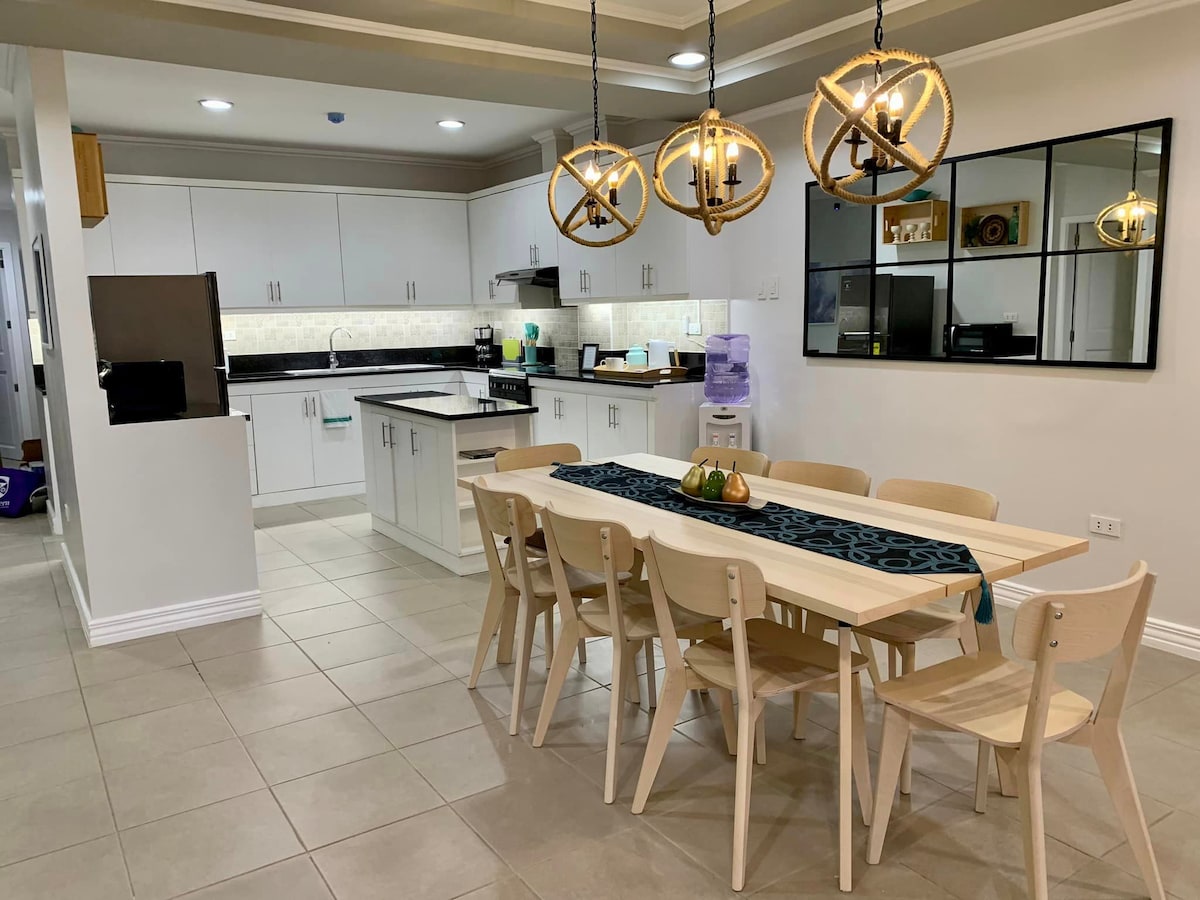 Ocean View penthouse is located on the third floor of the new condo inside Subic Bay Freeport Zone in a private and exclusive location with security 24/7. 6 suite rooms with bathroom for each room, driver or maid room with own bathroom, living room facing Subic Bay, fast free wifi, 2 flat screens smart tv, 4 private covered parking, kitchen with obem and microwave, large balcony with breath taking view of entire Subic Bay